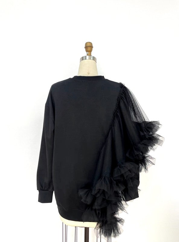 Gasp| Oversized Ruffle Sweatshirt (Black)