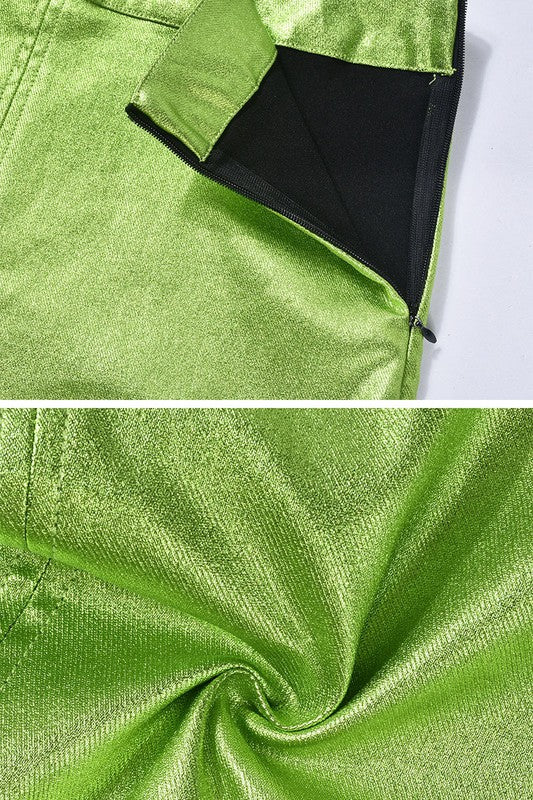 Make room. The Lime Lights Metallic Skirt isn’t here to blend in—it’s here to blind (in the best way). This high-shine chartreuse midi skirt features a structured silhouette, exposed seaming, and high-waisted fit that’s equal parts edgy and editorial. Whether you’re stepping out for fashion week or girls’ night, this skirt makes sure you’re the main event.
